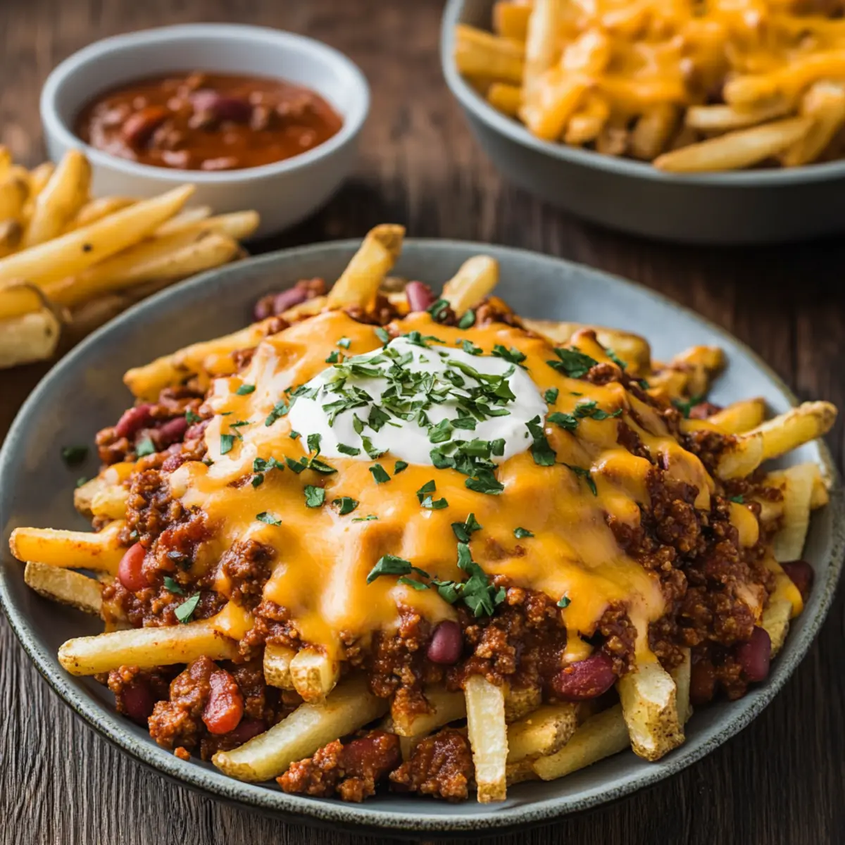 - Assemble this masterpiece. Pile those beautiful fries high, spoon the cheesy chili over them, and serve immediately for the ultimate comfort food experience.